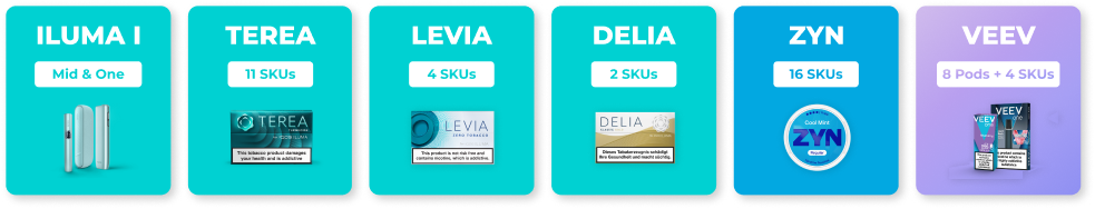 Showcase our exceptional assortment of premium products, carefully curated to meet the needs of your legal-age customers. By stocking the full range, retailers deliver a complete multi-category experience that drives shopper satisfaction and repeat visits.